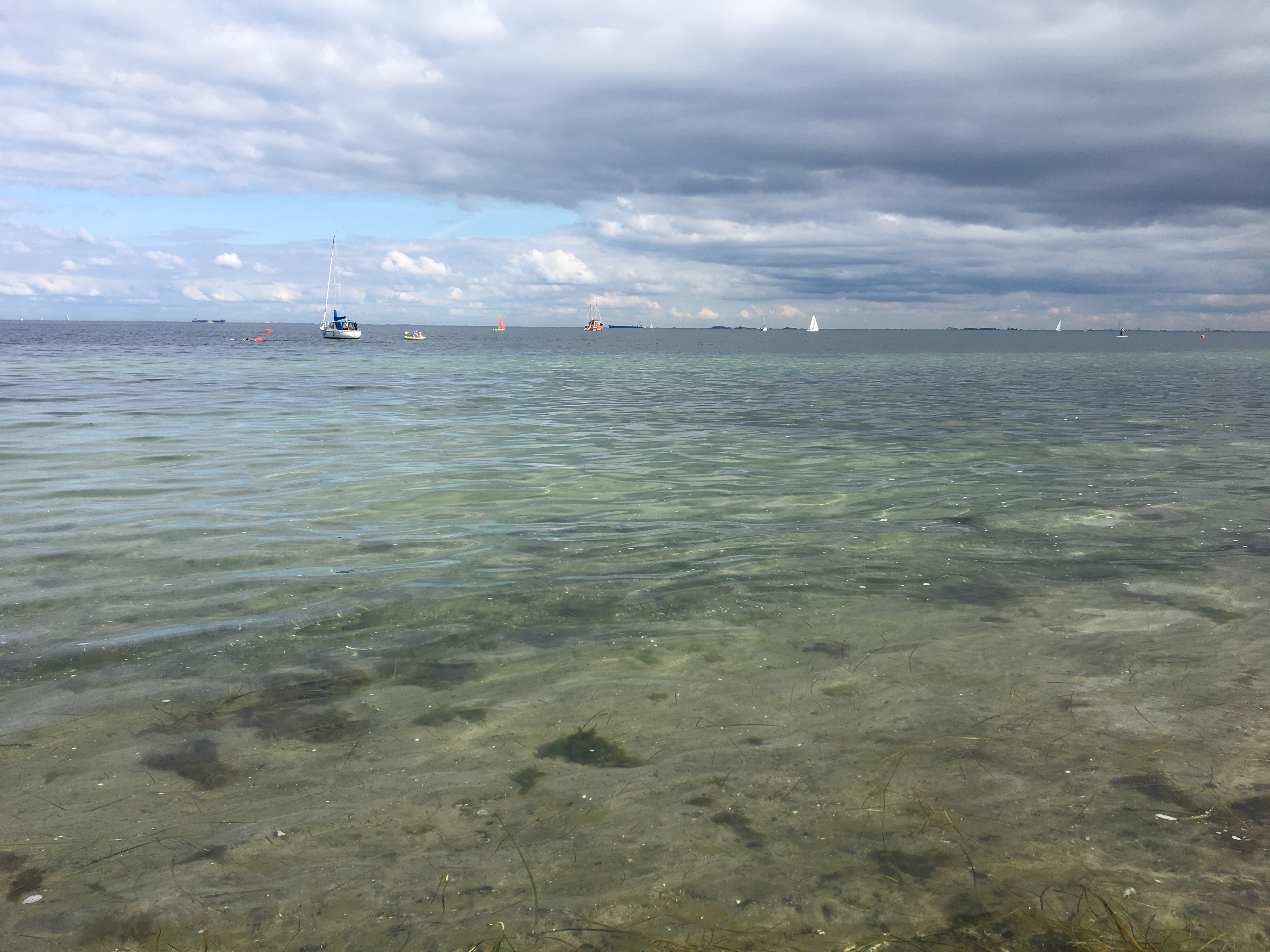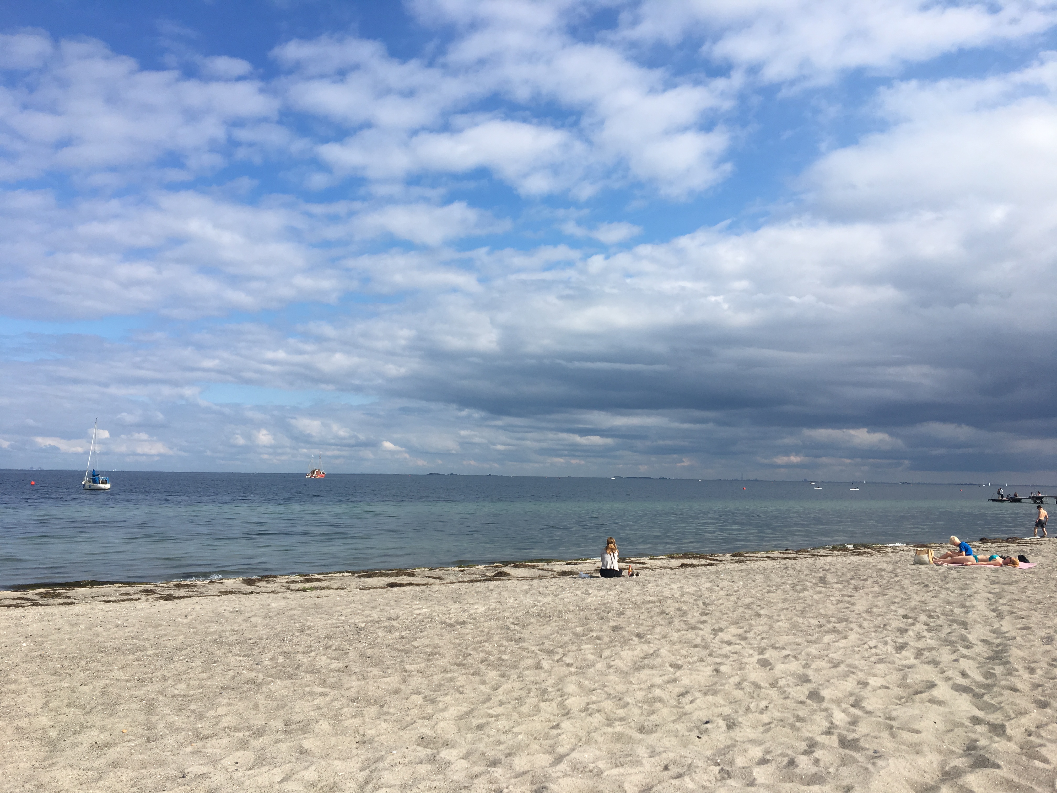Sufficiently fueled by ice cream, we set out on our bike ride. We first stopped by the harbor at Islands Brygge because my friends hadn’t yet seen it. This was just a pit stop. Our final destination was the beach. Yes, Copenhagen does have a beach and it’s pretty great. I managed to navigate us there successfully. I think that I’m finally confident and comfortable with my bike. Unfortunately, while it had been sunny all day, the clouds rolled in almost immediately once we actually arrived at the beach. Still, we had a nice day chilling (literally) in the sand and sticking our toes into the sea.